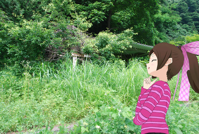 草むらの中にあるの、駅名板の跡じゃないかな。何となくホームの痕跡を感じるね。