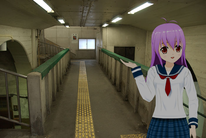 まずは反対側のホームへ行くこの渡り廊下なんかはどう?