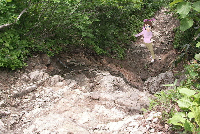 うわっ、いきなり岩場。ま、ホームページにも写真があったし・・・。コレ位はね!