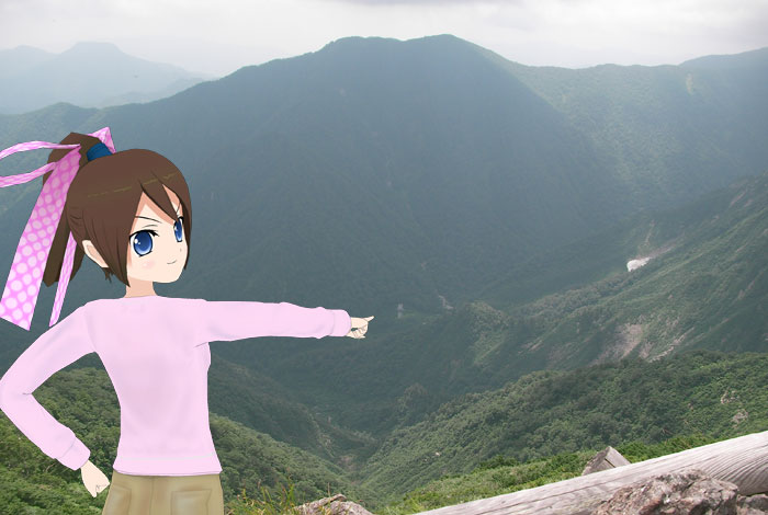私の指さしている方見て!あの煙突は関越トンネルの排気口なんだってさ。あの下を関越トンネルが通っているんだね。総延長10キロ、雄大な世界だね。