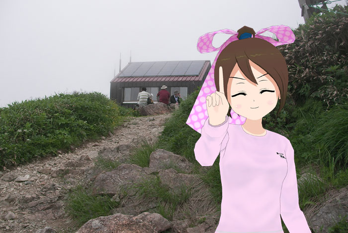 山小屋が見えてきたよ!もう少しで頂上だよ!
