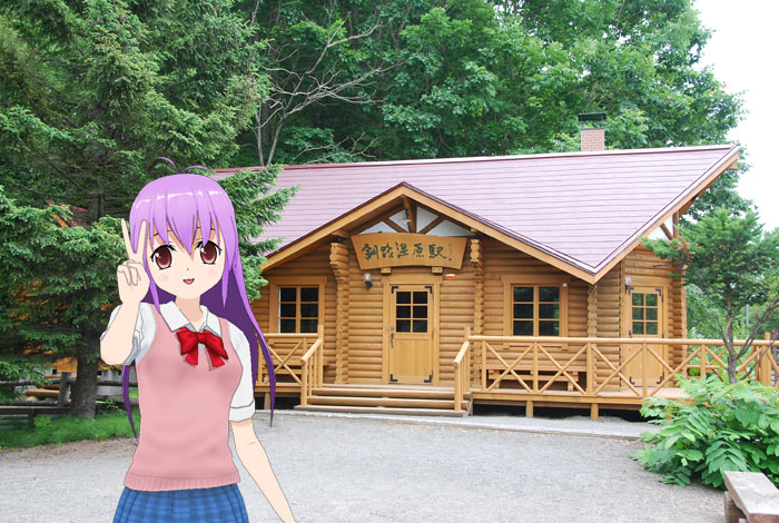 じゃ、あのログハウス風の駅舎で列車が来るの待ちましょ?