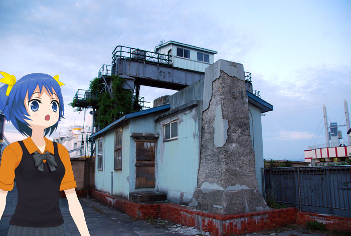 まずは外から案内するね。これは可動橋。簡単に言うと浮き桟橋だよ。潮位によって船の高さが異なるからここで地上のレールとの高さの調整をしていたんだよ。