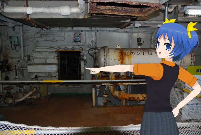 あそこの扉は水密扉。普段は開口が要求されるので開いているけど、浸水の際は遠隔で扉を閉鎖して浸水の拡大を防止し、沈没を防ぐの。