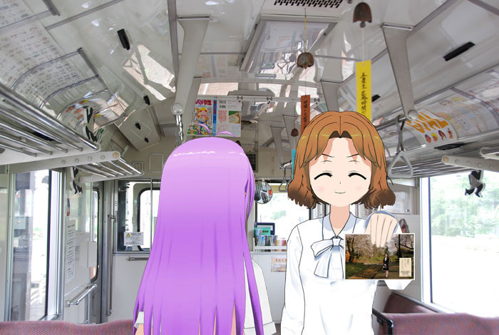 アテンダントさん 芦野公園駅は「大人の休日倶楽部」の撮影だば使われたはんですし。こいは義援金絵はがきじゃが、うちのアテンダントもこべこて同じ場所で撮影しますたぁー(笑)。