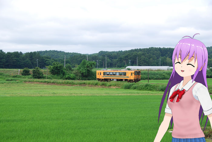 下り列車だ!田園の中を走る単行、いい感じだね。