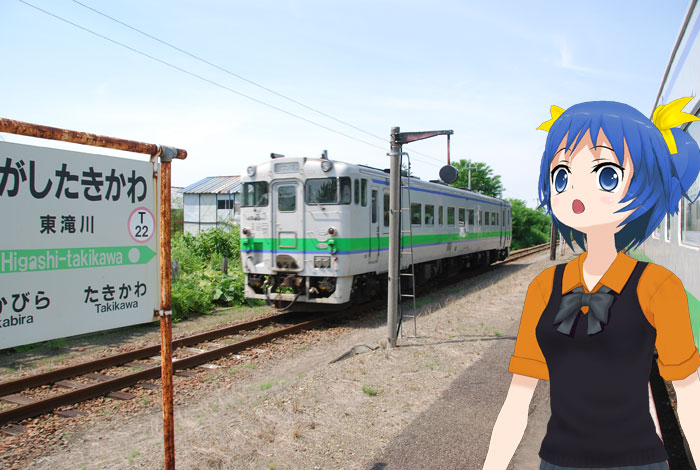 1つ目の駅、東滝川で交換待ちだって。4分位停まるみたいだよ。いかにも普通列車って言う感じだね。