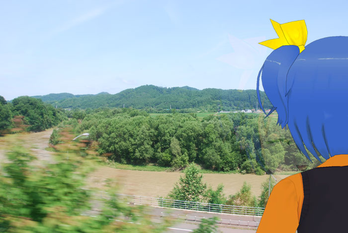 わっ!石狩川が凄い濁っているよ!上の方で大雨でも降ったのかな?でも大きくてぐねぐね曲がっているね。「いしかり」のヘッドマークそのままだね。