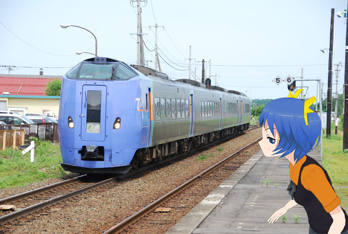 芽室ではスーパーとかち・・・。3駅連続で列車交換だね。横のロゴはTILT261って書いてあるのかな?